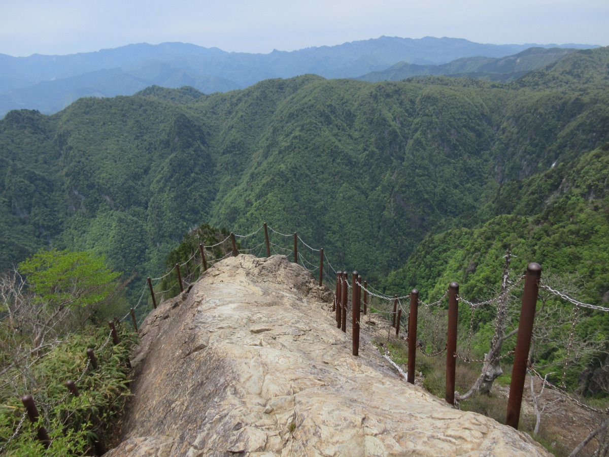 ▲大蛇嵓目前に突き出る不動返し嵓。最先端部から深い谷底を見下ろし、思わず息をのむ。