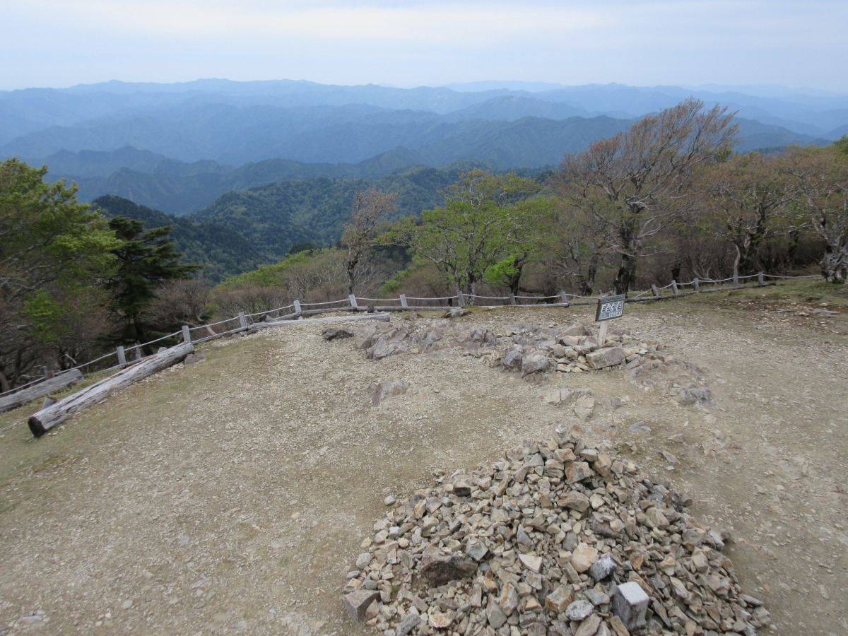 ▲日出ヶ岳山頂に建つ展望台から望む西側の景観。山並みの奥に大峰山脈が連なる。