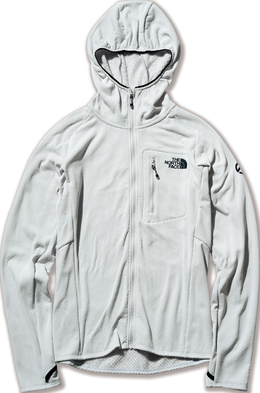 ふわりと軽く、ソフトで心地よい肌触り。細かい毛足が汗を吸い上げ、グリッドの通気性がすばやく拡散して、べたつきの不快感を防ぐ。防風シェルを重ねて保温力アップも可能。