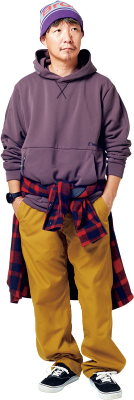 コレは真似してほしいくらい正解な気がする。僕のなかのティートンブロスのオフパターンが完璧にイメージできた。ワークでもあり、アメカジでもあり、アウトドアでもある。というのは、フードのデザインにもなっている首元の汗止めに、Vガゼットがあるだけで全体の雰囲気がまとまる、っていう細かい話ね。