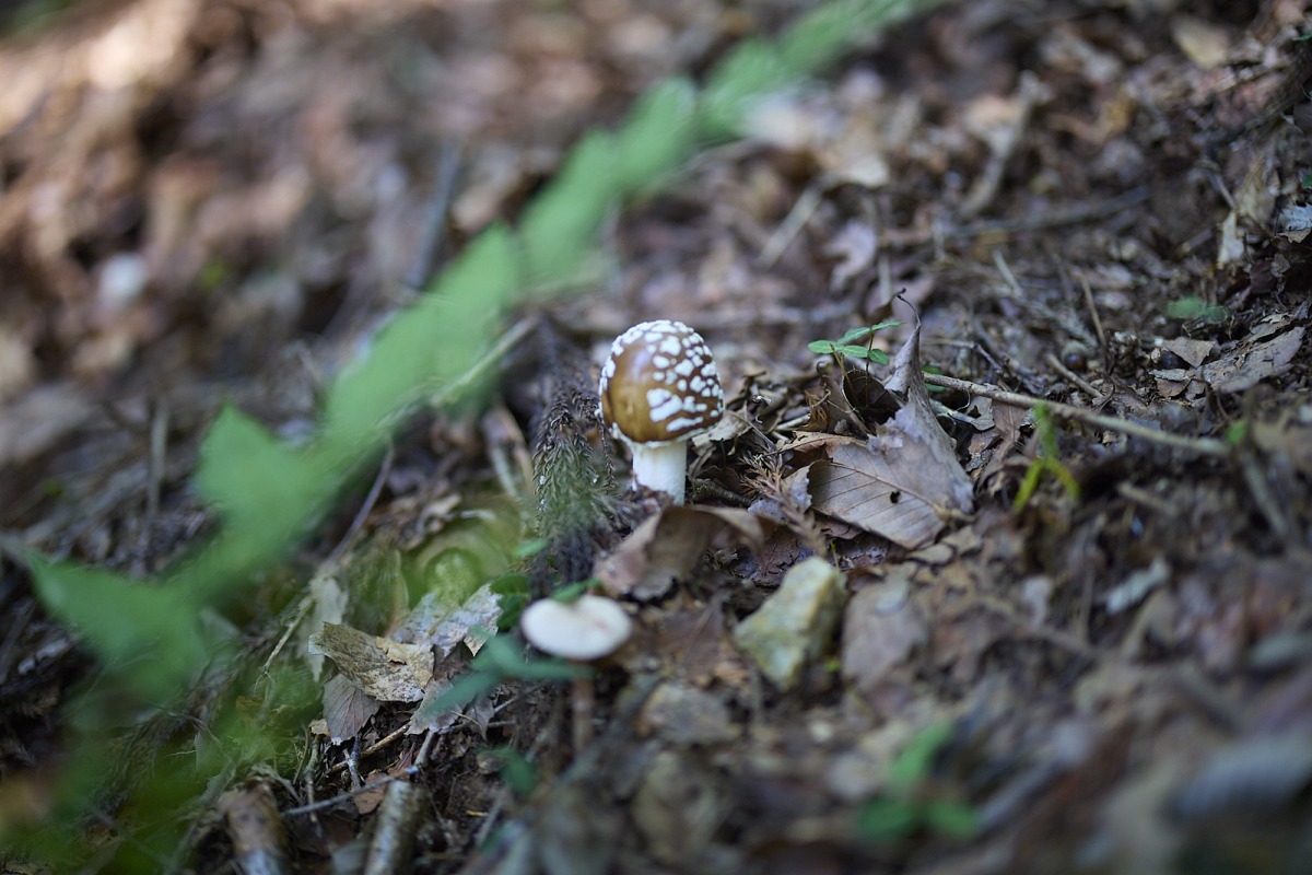 さまざまなキノコを発見!毒キノコも多いようで、注意書き看板も。