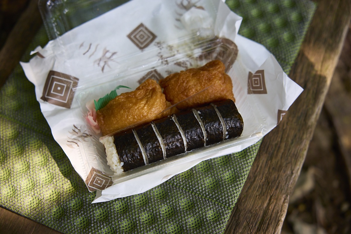 奥宮の手前、景色がよく開けているスペースでランチをしました。行きの乗り換え駅、御花畑駅で待ち合わせして、お弁当を買ってきたグループも。