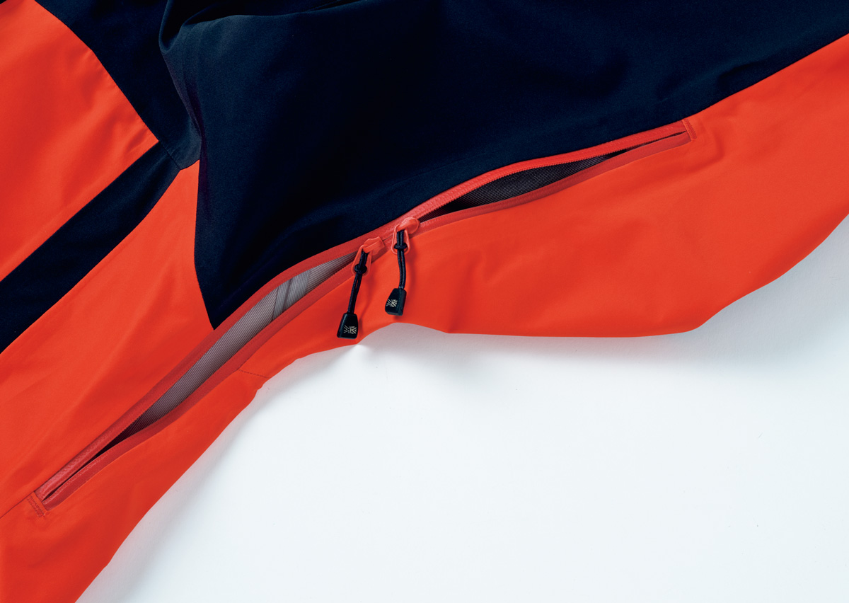 表地が40デニールのゴアテックスプロを立体デザインして、軽さ、プロテクション、動きやすさを備えた1着。アスリートからのフィードバックを基に、ポケットやベンチレーションの位置など細部の使い勝手も追求。