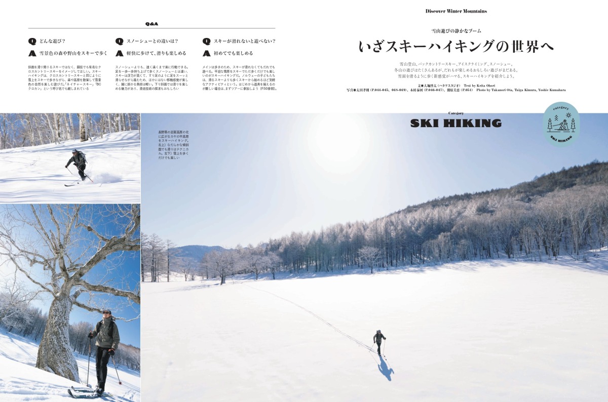 雪山登山にバックカントリースキー、スノーシュートレッキング&ハイキング、BCクロカンにアイスクライミング——登ったり、歩いたり、滑ったり——。