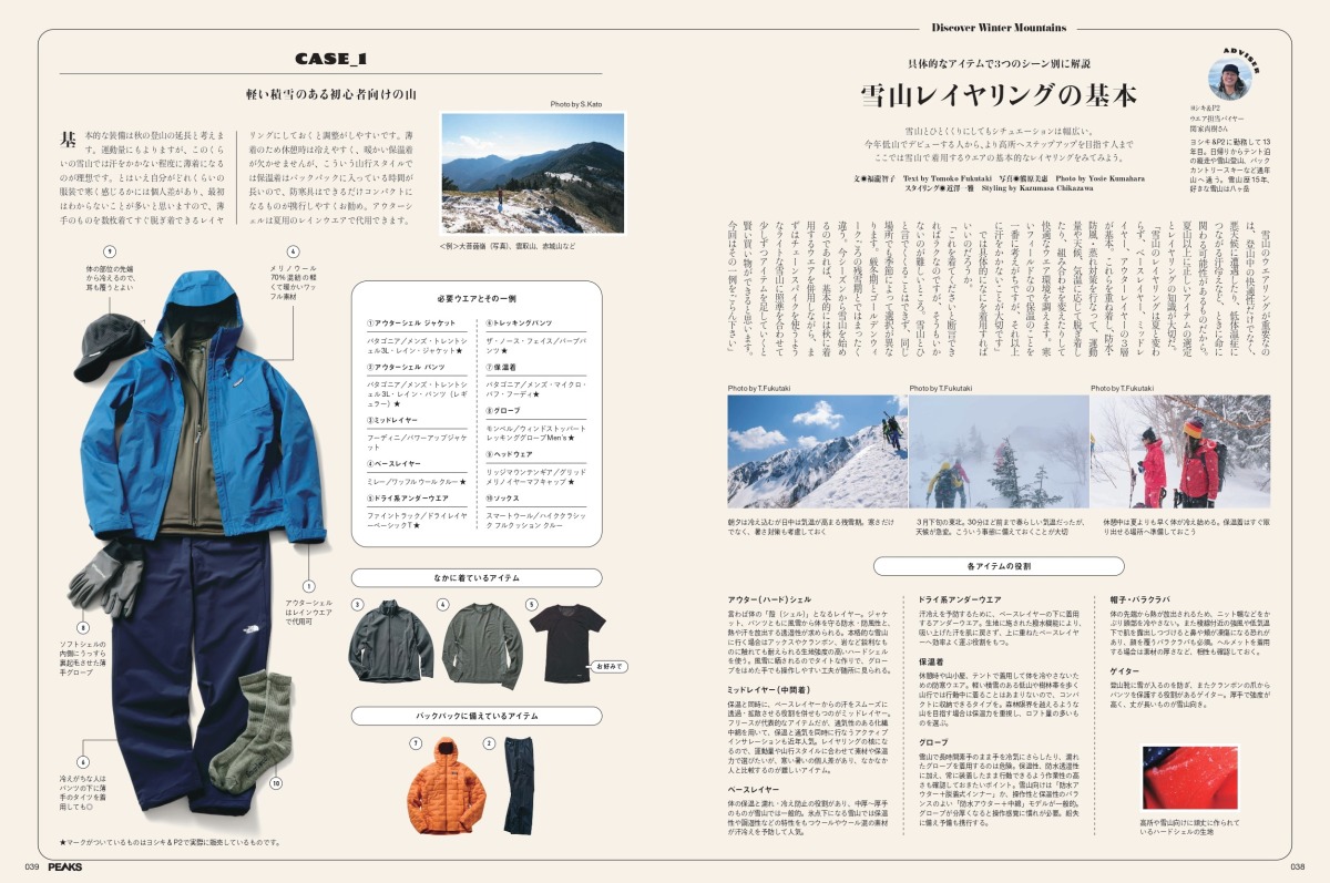 正しいウエアの選定が夏山以上に大切になってくる雪山でのレイヤリングも、しっかりと押さえておきましょう。