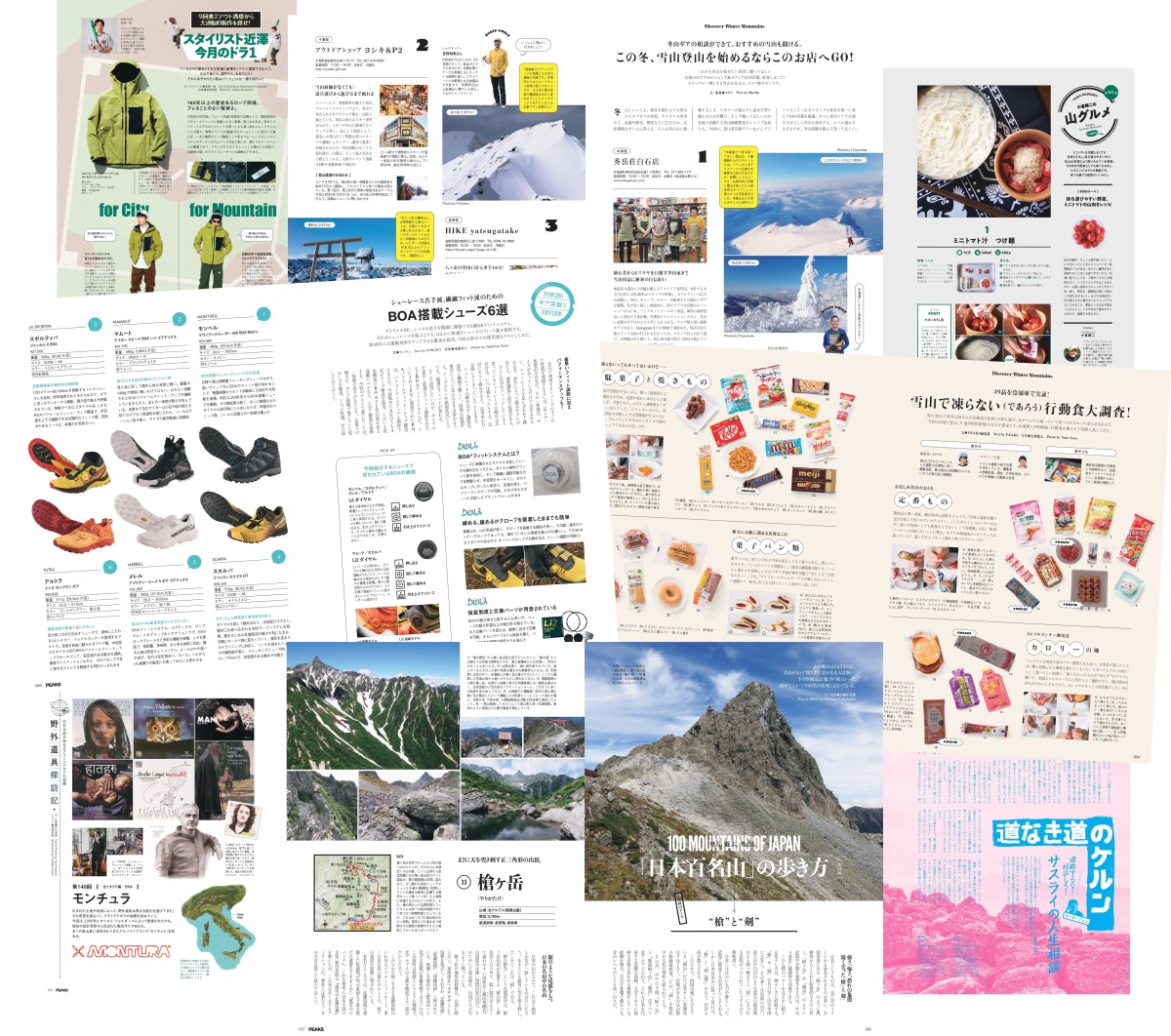 また、細かすぎるレビューでおなじみ、ポンチョさんはBOAフィットシステムを搭載したシューズを、高橋庄太郎さんは“槍”と“剣”をテーマに、槍ヶ岳や剱岳などを連載でご紹介しています。