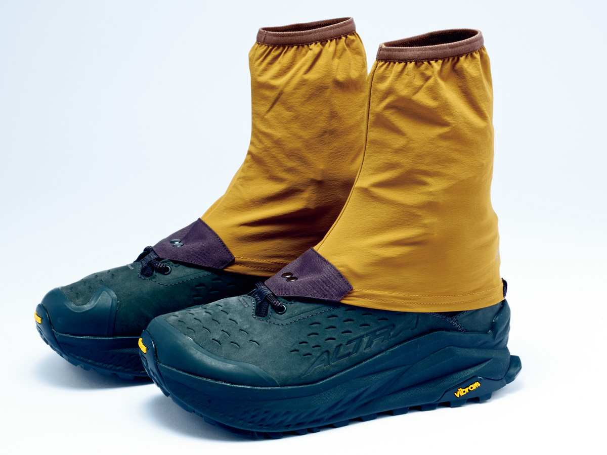 アルトラシューズ専用の「パワーゲイター2」(¥4,400)を装着可能。素材は高い撥水性を備えるソフトシェルで、水や小石を防いでくれる。