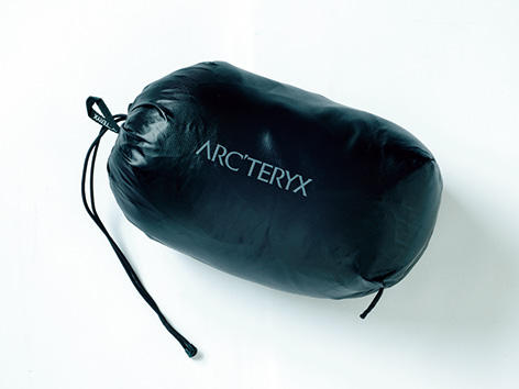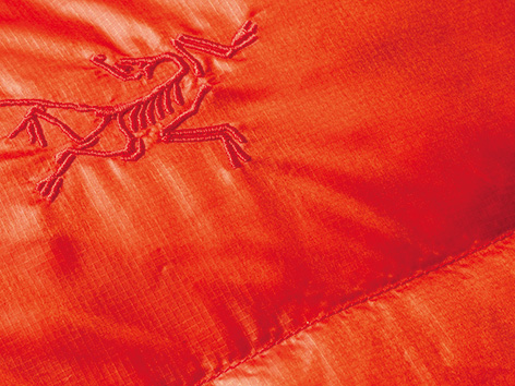 一方、表生地のダイヤモンドフューズは、ダイヤモンド型の断面を持つナイロンの平糸を高密度に織ったもので、非常に滑らかな表面に仕上がっている。そのため、特殊な裏面加工なしでもダウンの抜けを防ぎ、薄手ながらもひっかかりのない表面は耐摩耗性にも優れ、結果的に高い耐久性を発揮。一着の製品寿命を長らえることを環境対策の柱に据えているアークテリクスにとって、じつに理想的な素材のひとつといえる。