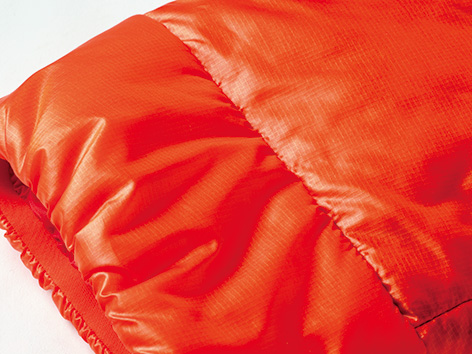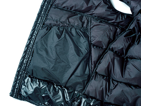 極めて滑らかな生地面を実現した新素材「ダイヤモンドフューズ」を表地に採用。高い耐摩耗性により生地の耐久性を高め、同時にダウンの抜けを防いでいる。
