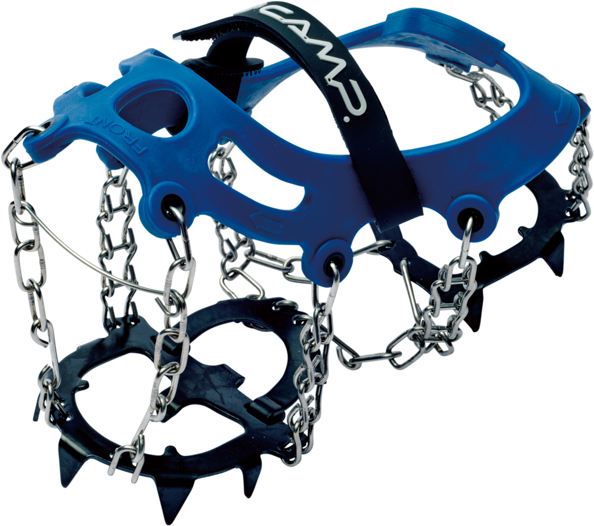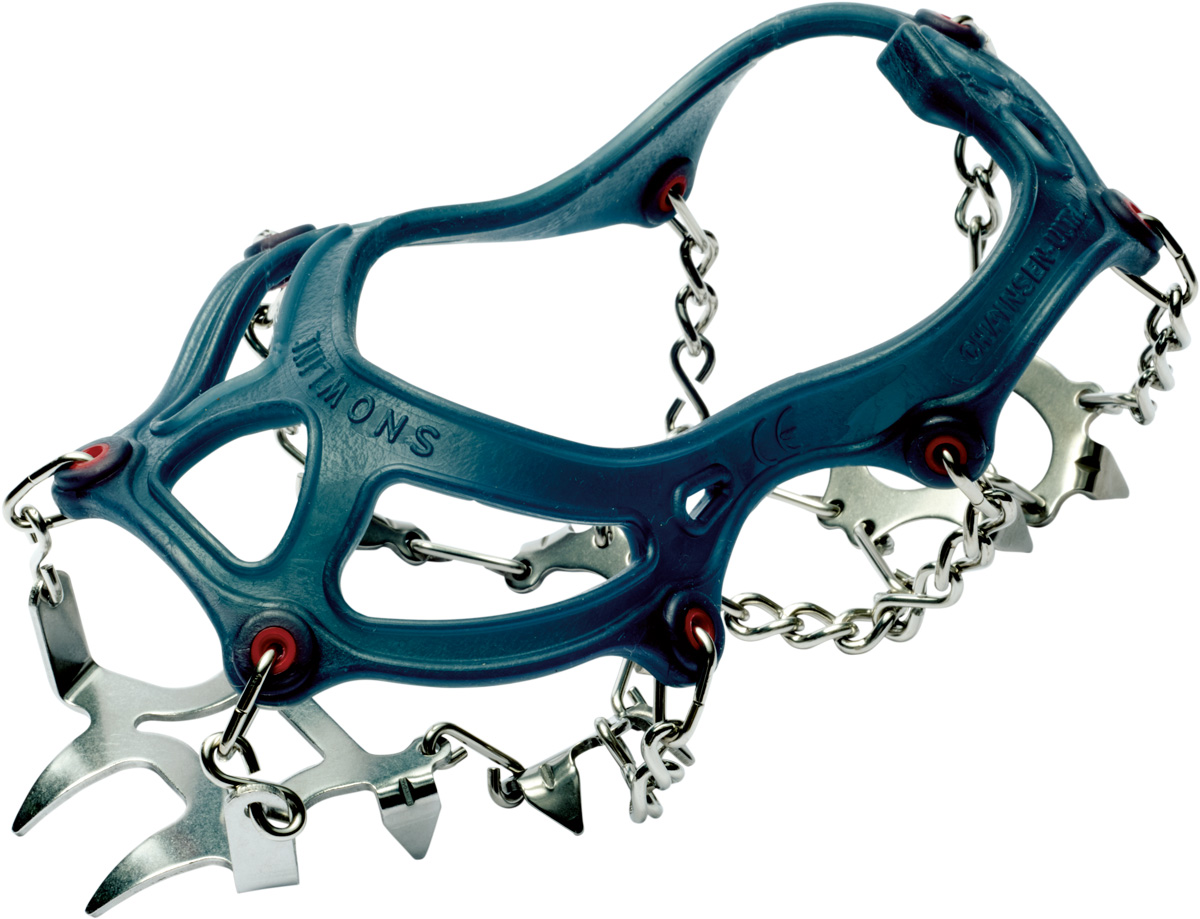 登山靴にすっぽり被せるように装着して使用する簡易的な滑り止め。クランポンよりも爪は短いが、地面の凍結やちょっとした積雪に対応できる。軽くてコンパクトに携行できるため、冬の低山ハイキングのお守りとしておすすめだ。