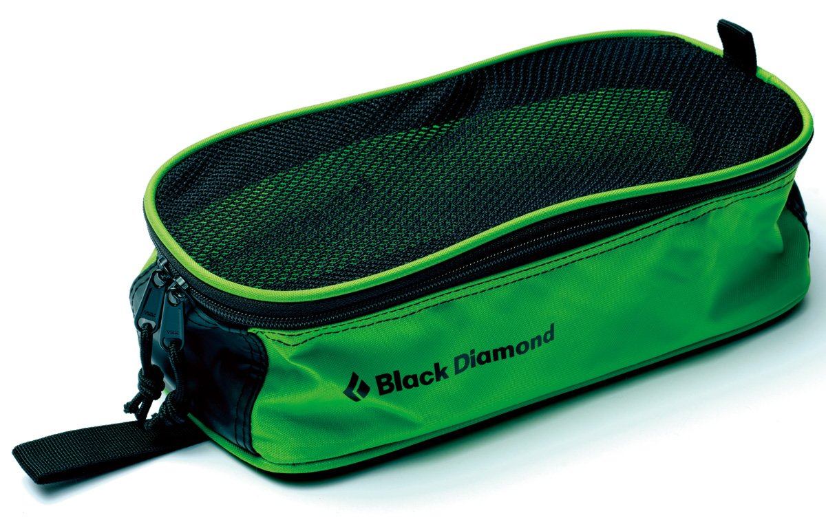 耐水性とタフさを備えたビニールコーティングナイロン素材と、通気性が高いメッシュリッドを組み合わせたケース。未使用時には平たく畳める。