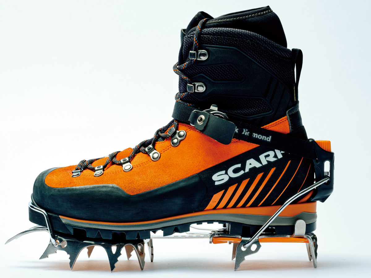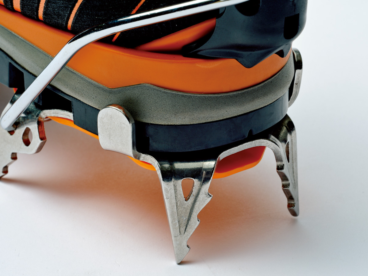 岩が露出したルートでも安定して歩けるように考慮したデザイン。爪についている半円形の切込みが、雪面に刺さったときの返しになりグリップ力を高める。一般ルートから岩と雪のミックスルートに対応。