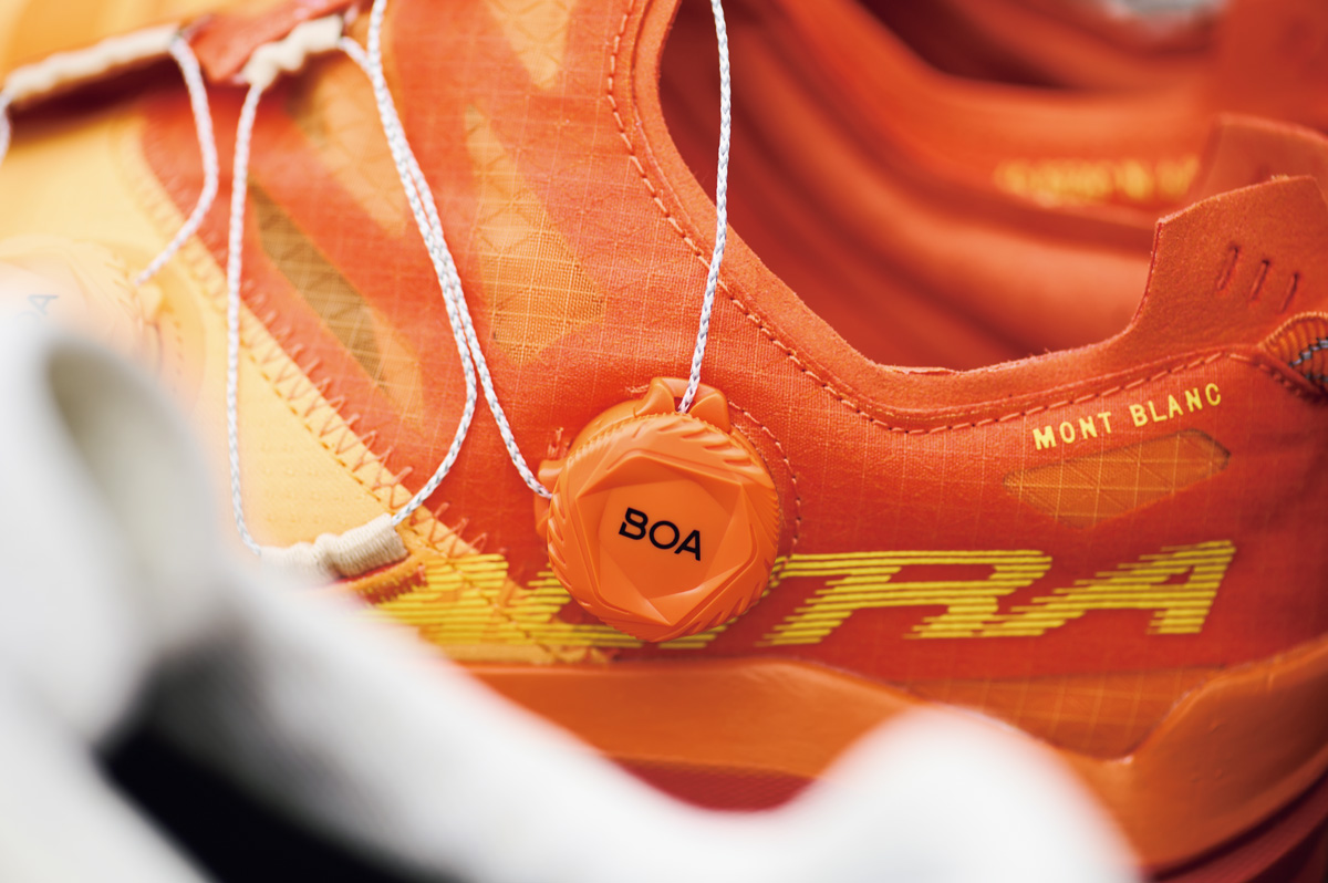 足が持つ力を引き出すシューズで、身体にこだわるULハイカー、トレイルランナーが愛用するアルトラ。足指を自由に動かせるワイド幅、中足部は2ダイヤル式のBOAパフォームフィット・ラップでホールドして、安定感のある動きを提供。厚底でハイクッションながら、ゼロドロップで足に掛かるストレスを軽減する同社らしさもある。