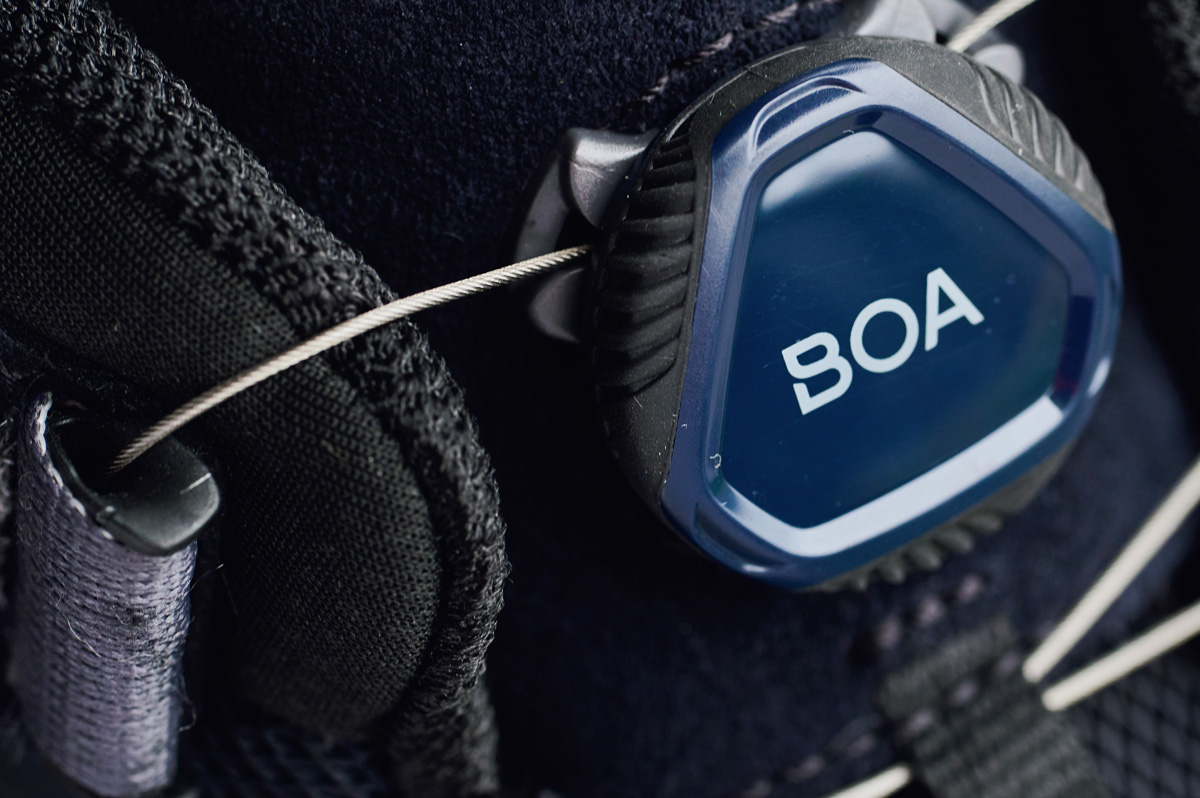 従来の紐靴同様にレースが配されたBOAながら、フィット感は十分。履き口のパッド量が多く、ふんわりとした履き心地がいい。