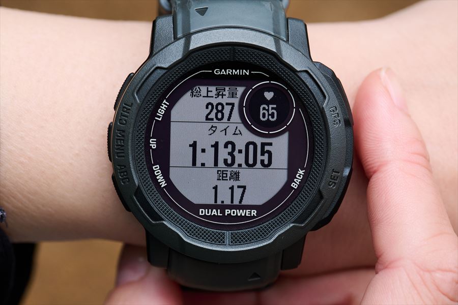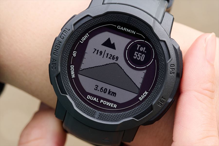 そのため、日中はほとんどバックライトが使われず、暗いときだけバックライトが点灯するのでバッテリー消耗が抑えられるんです。そのあたりもInstinct 2の長い稼働時間の一因になっていますね。