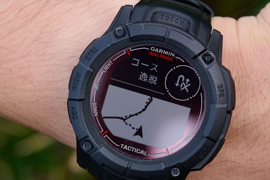 あっ、アラームが鳴りました! 「コース逸脱」(機種によっては「オフコース」と表示)とディスプレイに表示されていますね。