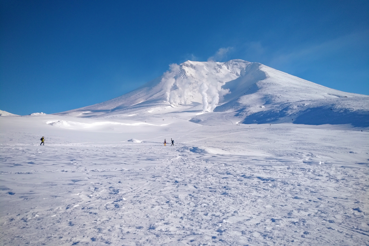 ▲2019年に訪れた1月中旬の北海道・旭岳(2,291m)。平均気温は-10℃ほどといわれているが、このときは寒気が入り、-20℃まで下がった。ウールベースレイヤーにウール混紡のハードフェイスフリース、アクティブインサレーションとハードシェルで行動。