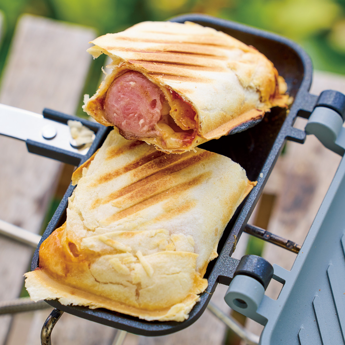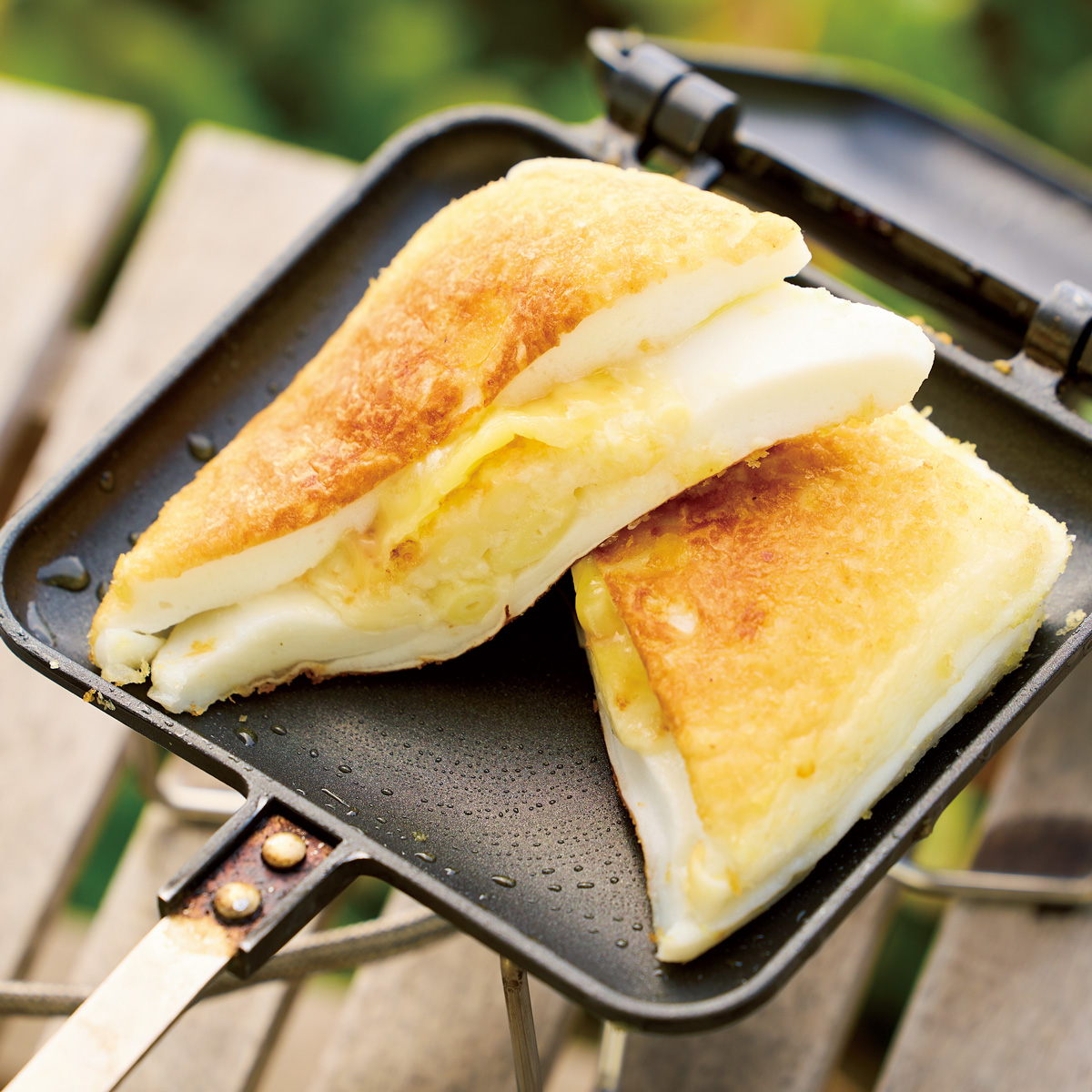 本来は食パン一枚を半分に畳んでサンドするためのモデルだけど、敢えて食パンは焼かずにこの形状を活かした、超簡単レシピを紹介。最軽量モデルなので気軽に山に持っていって試してみよう。