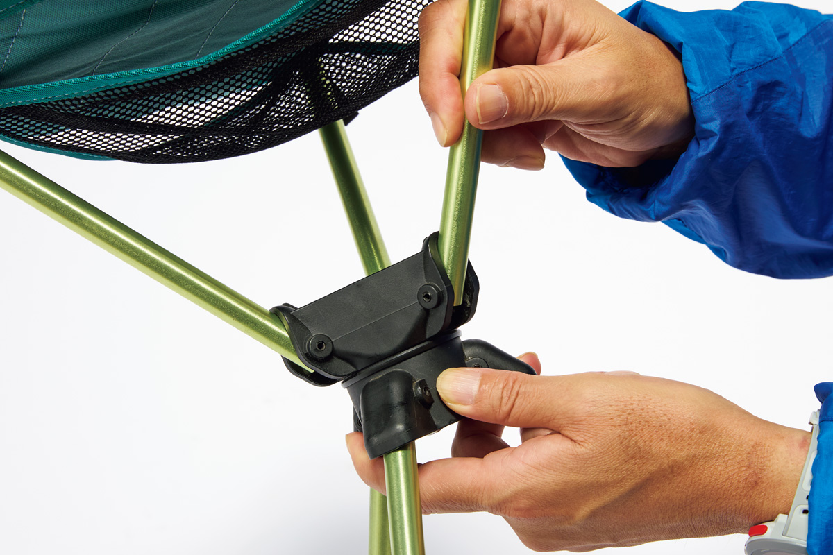 モンベルは脚先のカバーにボリュームを持たせ、さらに凹凸の滑り止めを施し、地面への沈み込みや径の小さなチェアにありがちな、転倒を防ぐ細かい配慮あり。