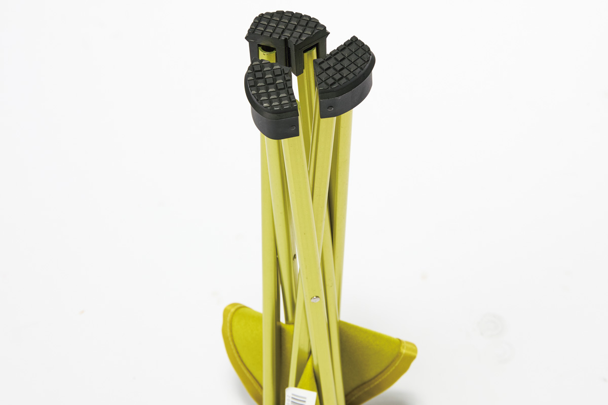 軽さを特長とするスツールだが、これは510gとやや重め。その理由は、収納時のコンパクトさはそのままに、脚部をハブで上下に分けて座面を回転できるようにしたため。しかしその効果は絶大!なぜすべてのチェア&スツールは座面が回転することをデフォルトにしないのか? と思えるほどに快適。見つめる風景は広がり、調理もしやすい。