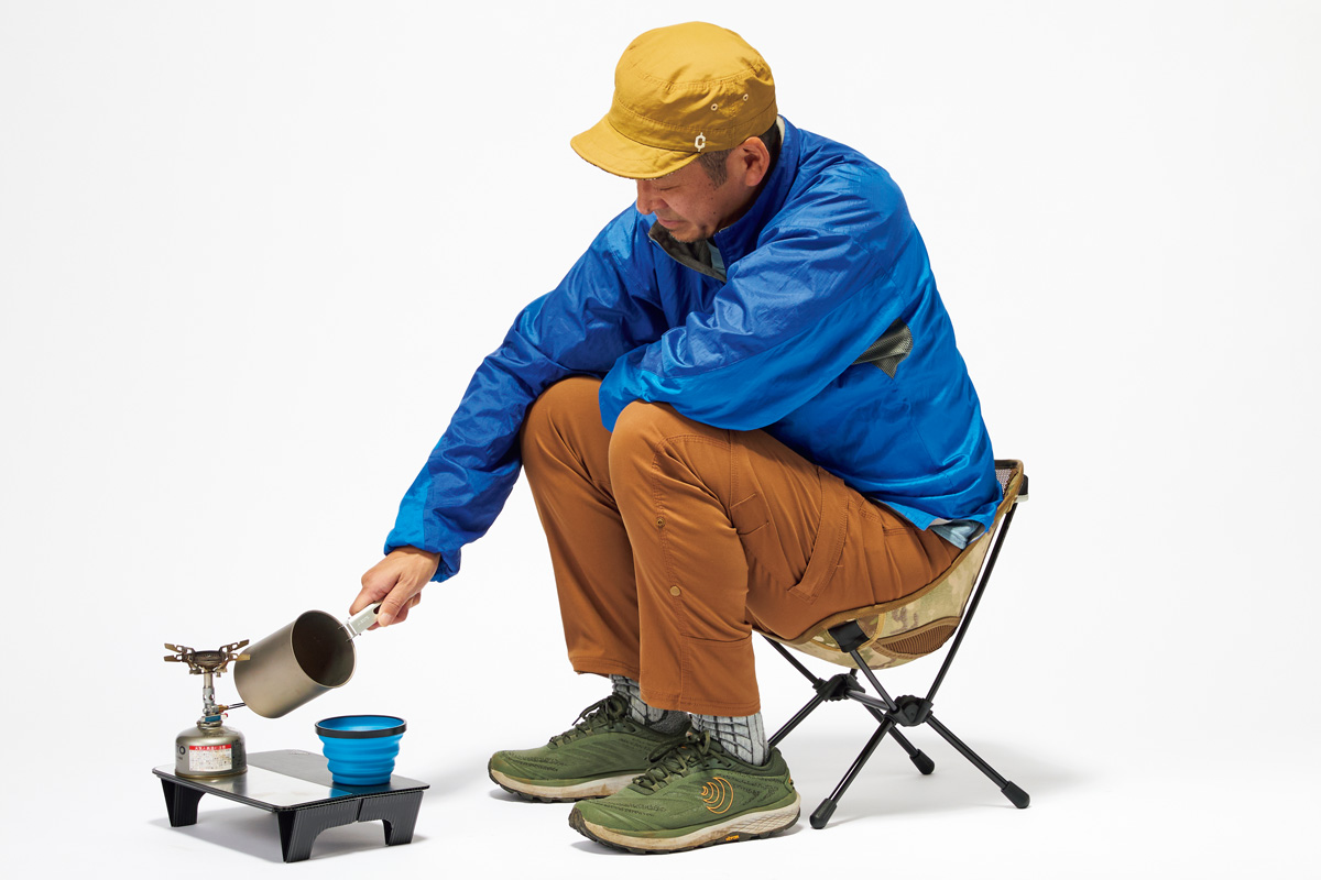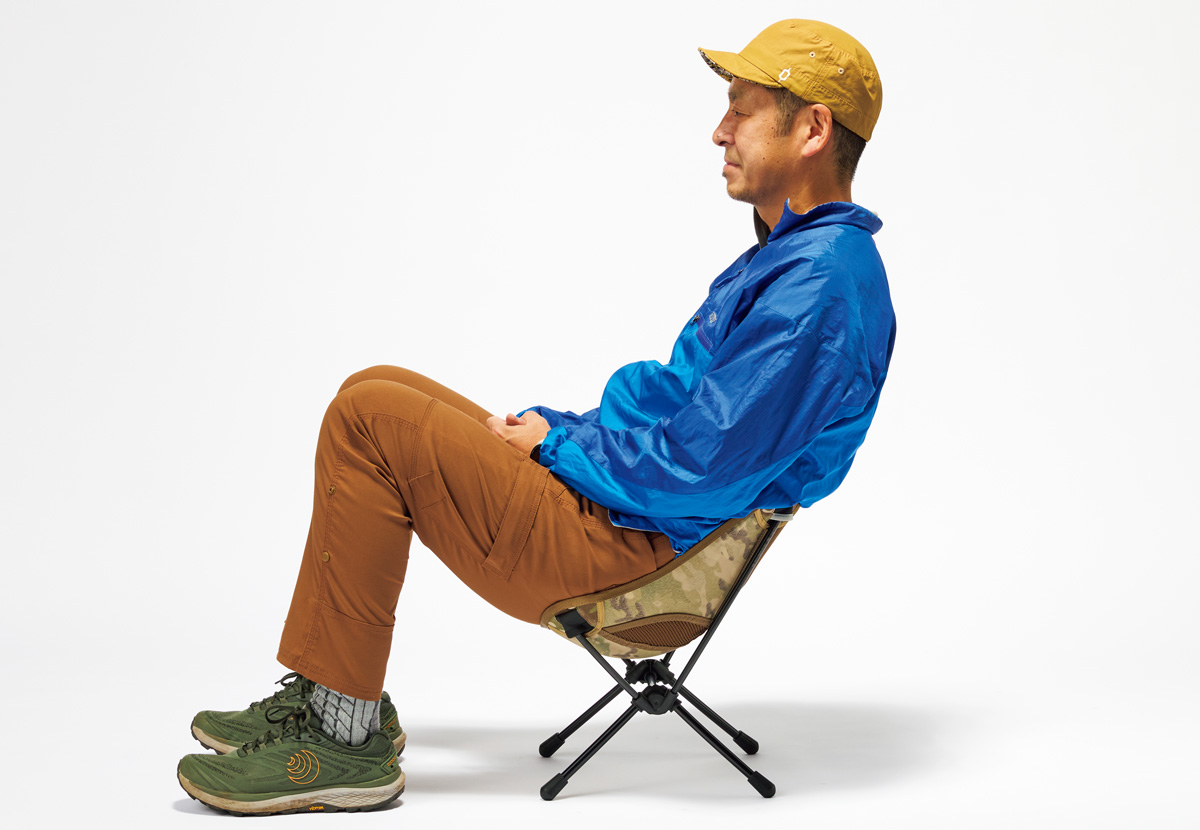 その際、山をダイレクトに感じるために、地面に直に座ることもありだ。けれども背もたれがあったり、座面の高さがあって快適で寛げる、チェア&スツールを使うことが多い。