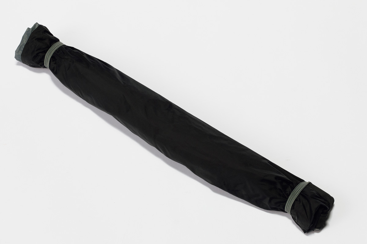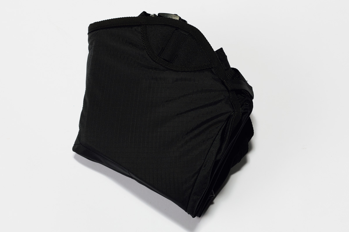 アーム部のコード長を変えて背もたれの角度を調節、リクライニングできるチェア。重量520gは今回最重量だが、寛ぐことを重視するならむしろ軽い!ヘリノックス同様の吊り下げ式座面サイドを省略、アームにして軽量化。座面自体もメッシュ地で軽さとフィット感に貢献。収納袋は本体下部にセットして沈み込みを防ぐ仕様。ギミックも細かい。