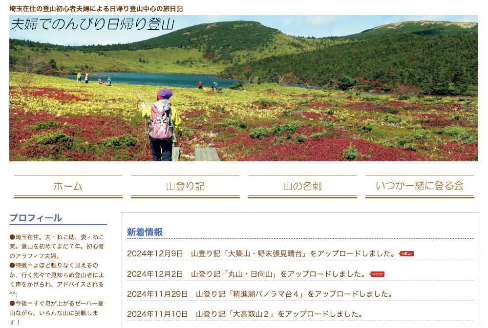 “日帰り登山”で検索すると、上位にヒットするブログがある。それが「夫婦日帰り登山|山登り記」だ。