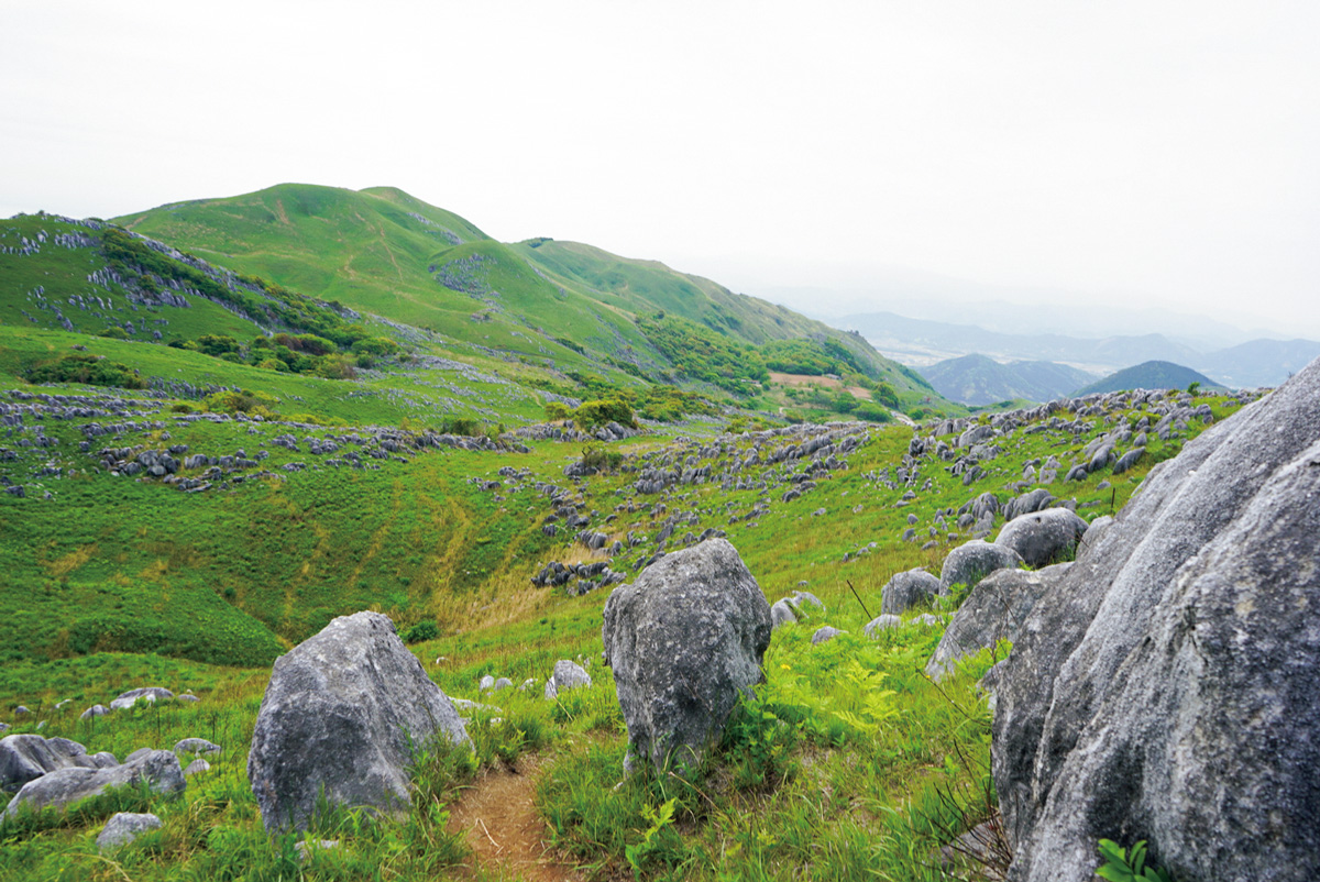 一面に見渡せるカルスト台地はどこから歩いても眺望良し。ベストは初夏と秋。体力や天気に合わせてルート取りができるのでオールシーズン老若男女だれにでもおすすめできます。