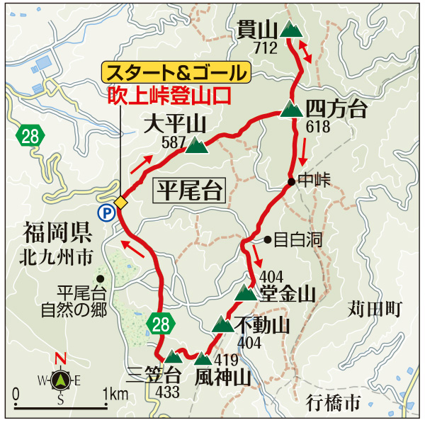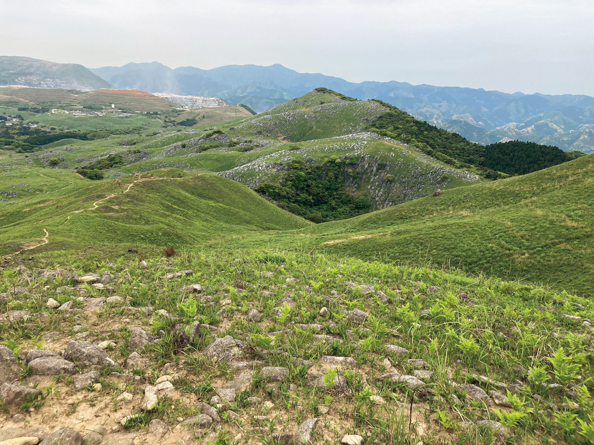 車を降りればすぐにトレイルに入れるため、ドライブついでに散策をしている人も多い。じっくり歩くなら、平尾台最高峰の貫山を目指し、道路を挟んで反対側にある三笠台に抜けるコースが歩きがいがある。山頂の東側は周防灘や国東半島の大展望。穏やかに波打つ丘は適度なアップダウンがあり、標高を上げると開放感に満ちた景色を見渡すことができる。地底には200を超える洞窟があるとされ、見学できる鍾乳洞もある。
