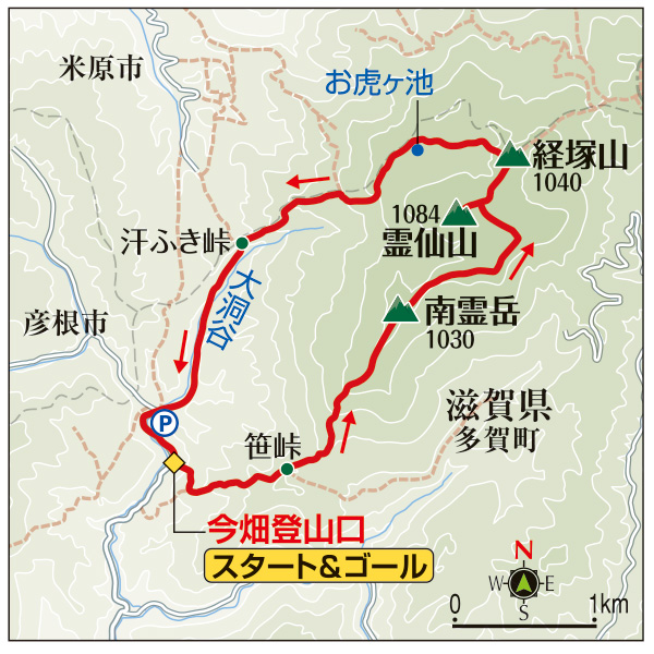 登山口は今畑からスタート。反時計回りで歩く周回コースがおすすめだ。樹林を抜けると早々と視界が開け、高度を上げるたびに眺望が変化していく。霊仙山の最高地点、山頂、経塚山を経て霊仙神社が鎮座するお虎ヶ池を歩くルートは、地球の息吹を感じられる圧巻の山行になるはずだ。