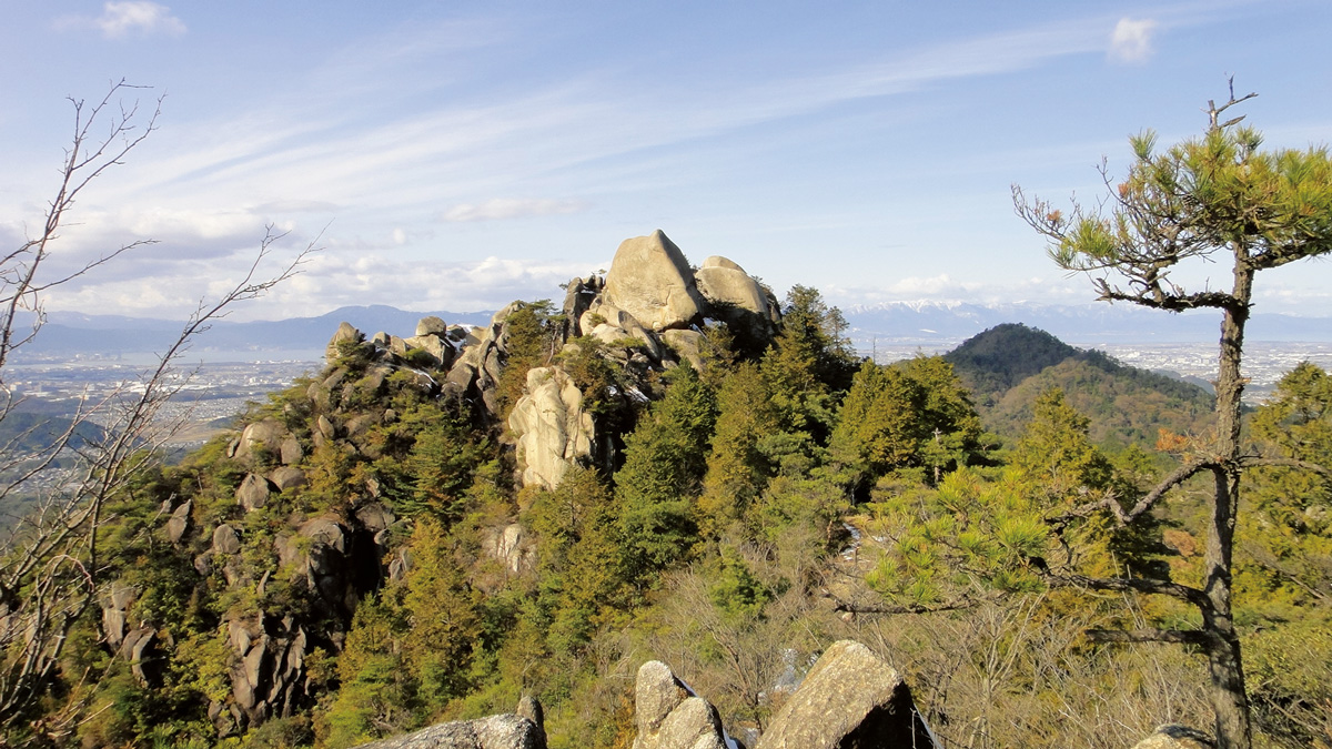 琵琶湖を遠望する湖南エリアにある金勝(こんぜ)アルプスは、奈良朝時代から山岳仏教が栄えた地。奇岩が点在するなかに、趣きある摩崖仏や石仏なども点在し、見どころの多いハイキングが楽しめる。