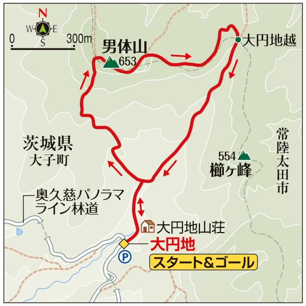 大円地駐車場(約10台。トイレあり)へはマイカーアクセスが利(冬は路面凍結に注意)。公共交通機関の場合、最寄りのJR水郡線上小川駅から大円地までは徒歩約90分。