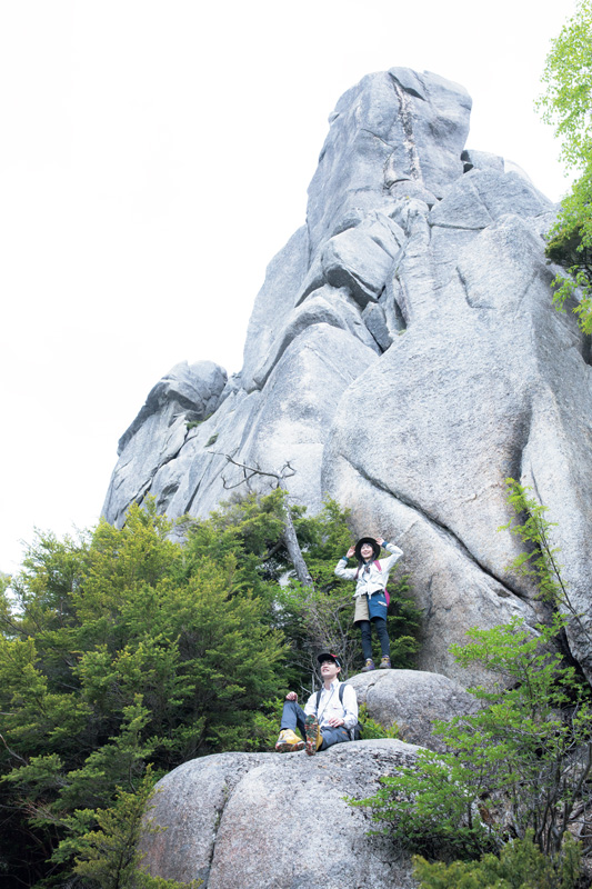 登山口の瑞牆山荘から歩き始めてしばらくは、平坦な樹林帯が続く。ほかの山とひと味異なるのは、登山道の周辺に、まるでだれかが置いていったかのごとく唐突に岩が点在していることだ。