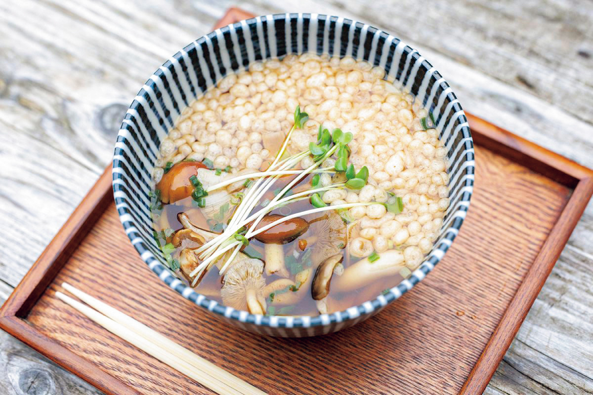 富士見平小屋には、数多くの昼食メニューが用意されている。なかでも天然きのこうどんは、山小屋周辺で採れた15種類のきのこが入った贅沢な一品。きのこが旬を迎える秋にぜひ食べてほしい。