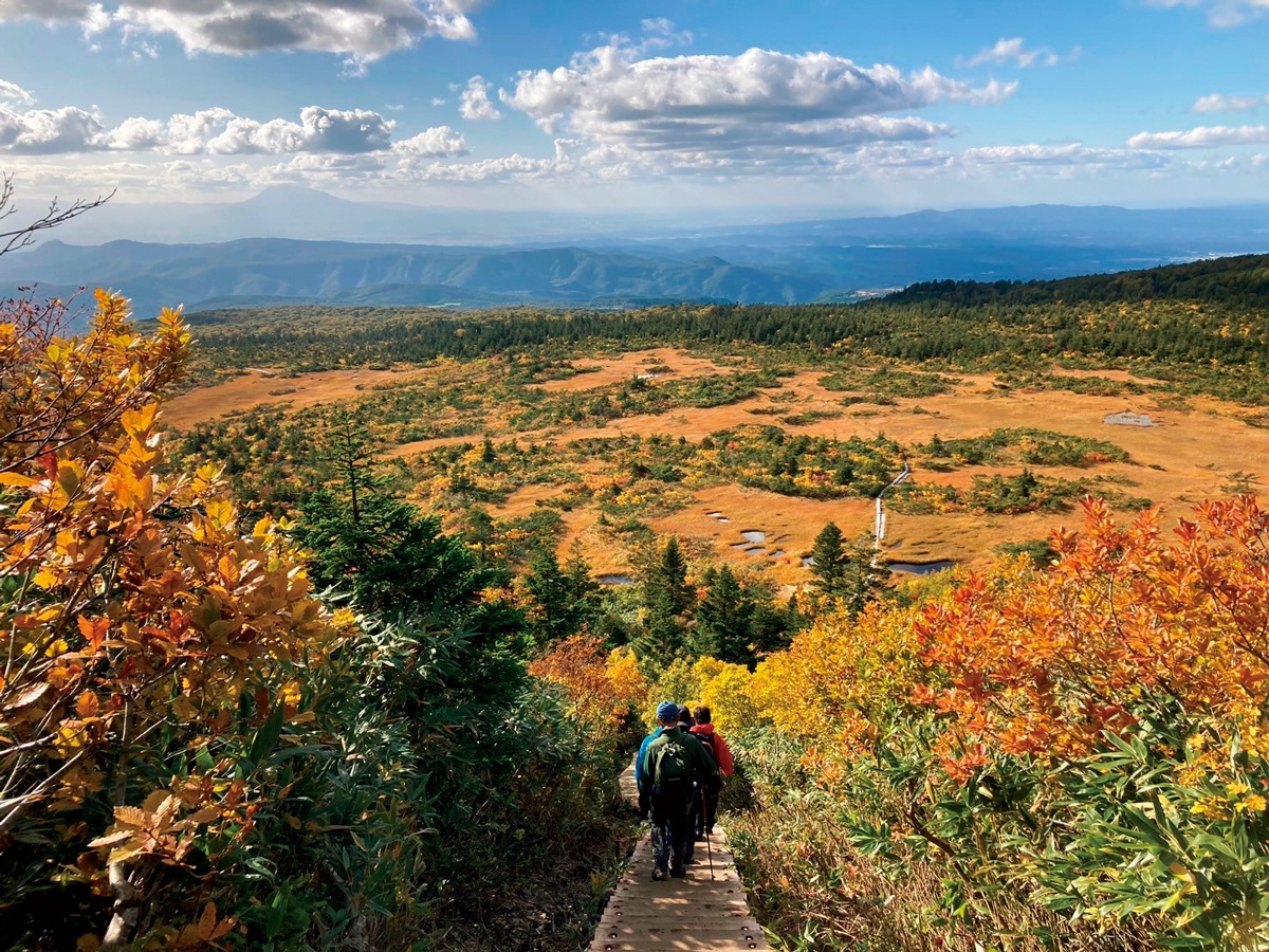 今回紹介するルートは、山頂駅から赤倉岳を経由し、大岳山頂から酸ヶ湯温泉へ下る縦走コース。山麓駅と酸ヶ湯間はバスが運行している(本数が少ないので要確認)。一般的には酸ヶ湯から大岳を周回する登山者が多いが、このコースではロープウェイ直下に広がるブナやアオモリトドマツの深い森の絨毯と、山頂駅からは樹林帯を抜け雄大な八甲田連峰の展望を満喫できる。