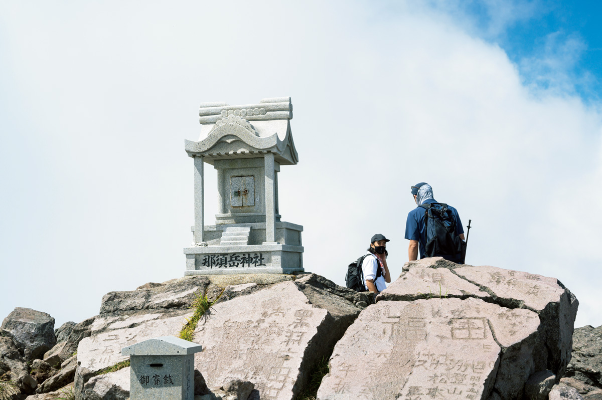 なかでも那須岳(なすだけ)(茶臼岳、朝日岳、三本槍岳からなる那須連山の総称)は楽しみ方が多い。都心から車だと3時間ほどで、日帰りが可能な範囲だ。主峰である茶臼岳へは山頂駅から往復で約1時間20分と軽装備で初心者でも楽しめてしまい、眺望も申し分ない。ただ経験者として物足りないのはもちろんだが、格好がつかないので、お鉢巡りからの朝日岳を目指す。実際は連山の奥に位置する三本槍岳までを日帰り縦走できるとされているが、健脚とはいえない脚なので無理はしない。下山は峰の茶屋跡避難小屋から山腹を巻いて下り、駐車場へと向かう。なだらかな坂が続くので、ひさしぶりでも膝がビックリせずにすむ。身体に鞭を打ち、時間に追われながらのルートを組むより、体力低下を受け入れて、等身大の自分にあったルートやアプローチを組んでみるのもありだ。