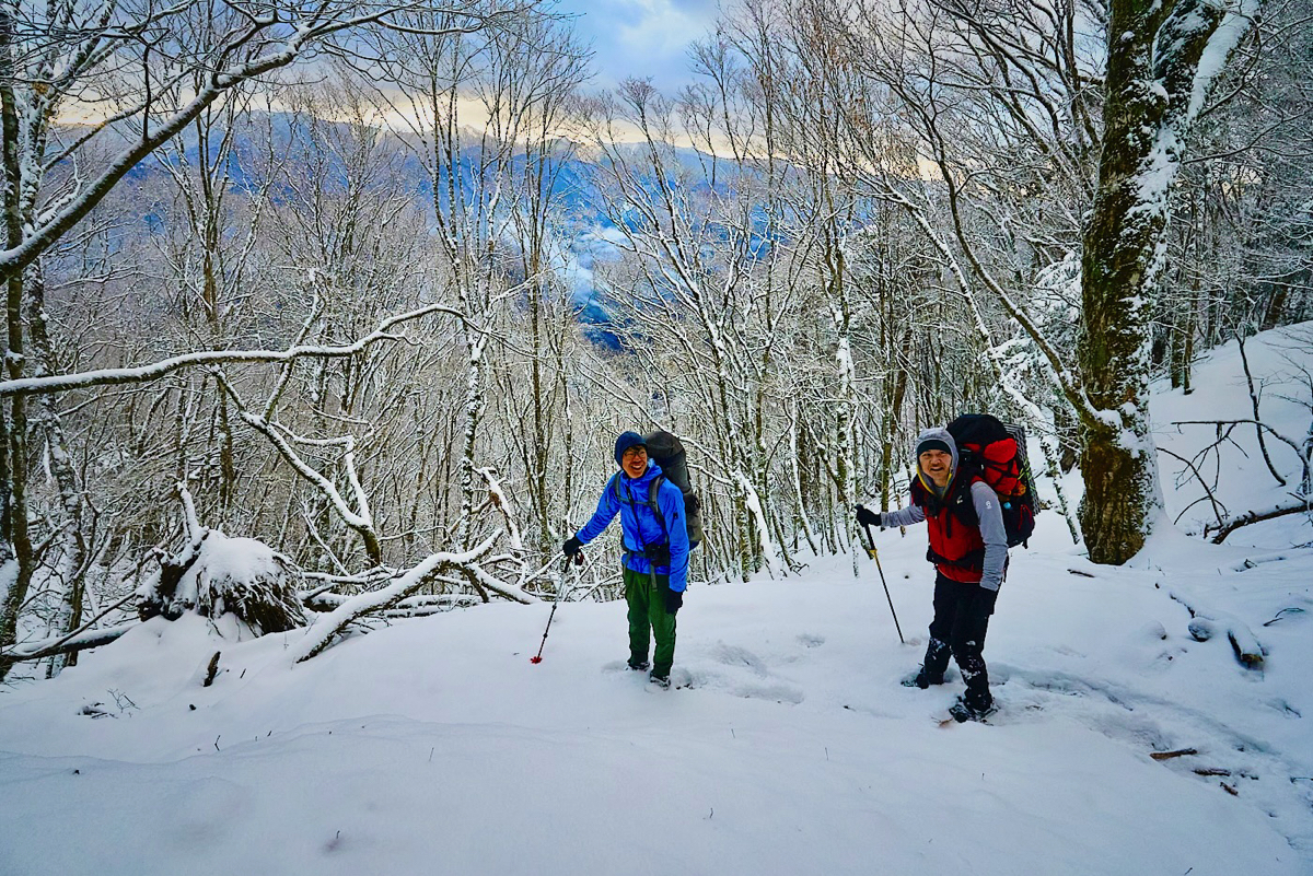 最高気温でおおよそマイナス5℃。宿泊装備を背負っていたので行動中は汗が滲みましたが、止まると寒い。荷物を下ろして休憩する際は保温着を羽織ります。
