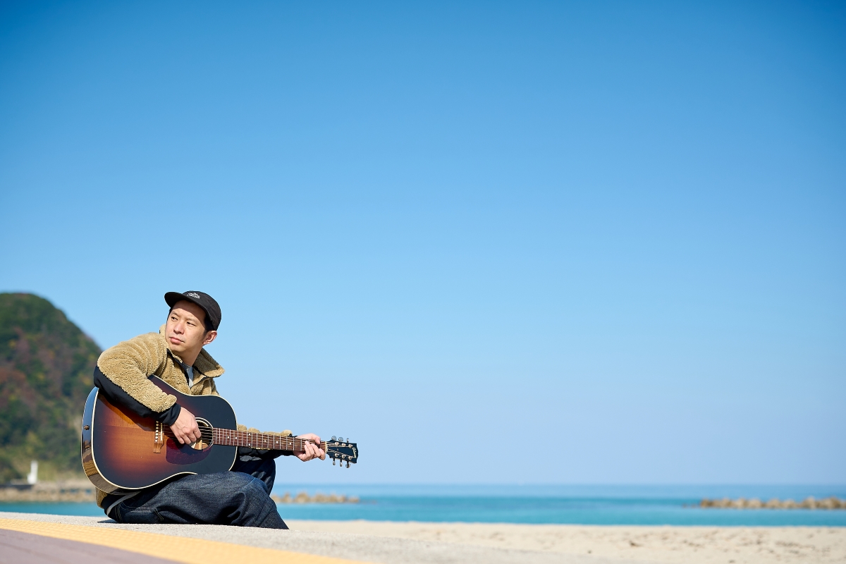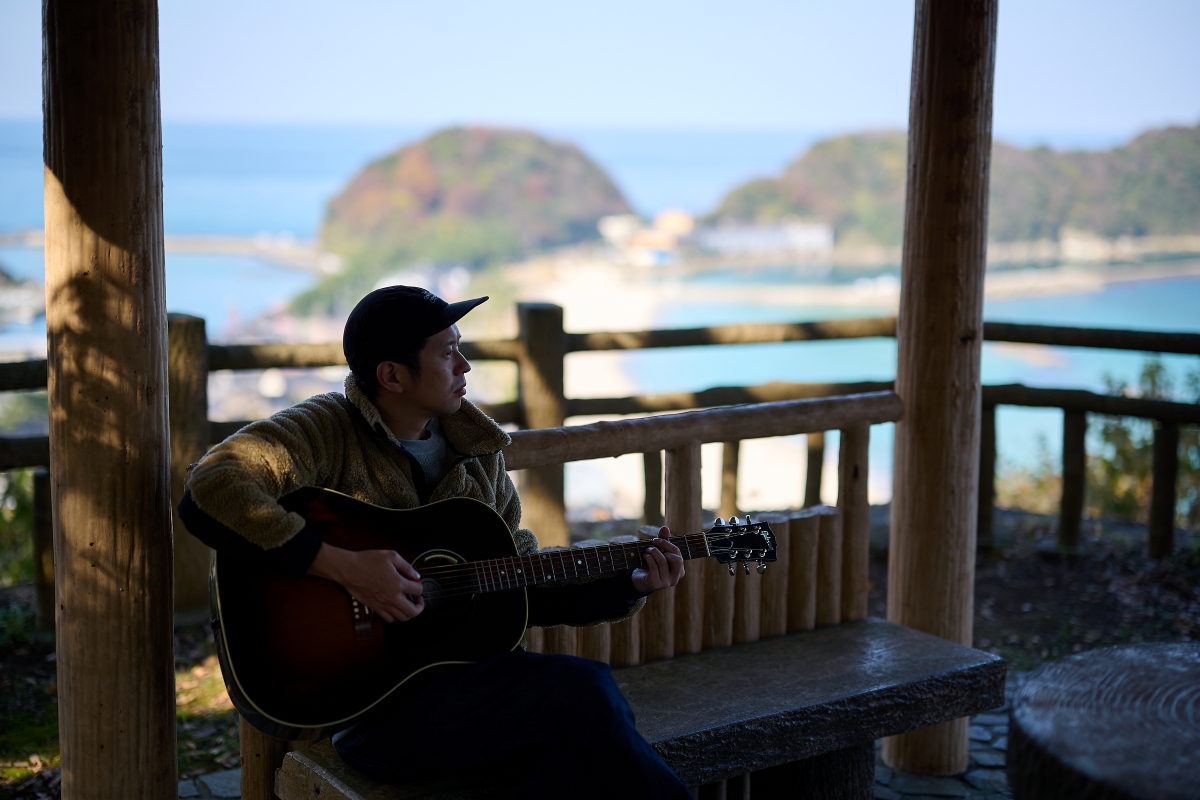 そして、あずま屋で撮られた写真を見て思い出したのだが、ここでも僕はギターを弾いている。ライブ映像を撮影した時と、写真を撮ってもらった時は別の日だ。どうやら僕は竹野を歩くと歌いたくなる性分のようだ。