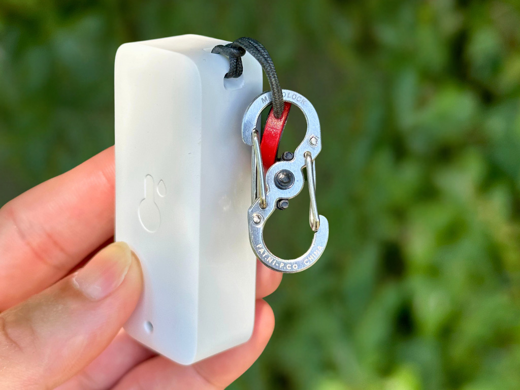 ブルートゥースを使いスマホで温度表示をする温湿度計。つねに温度を記録しているのでさかのぼって温度を調べることも可能。