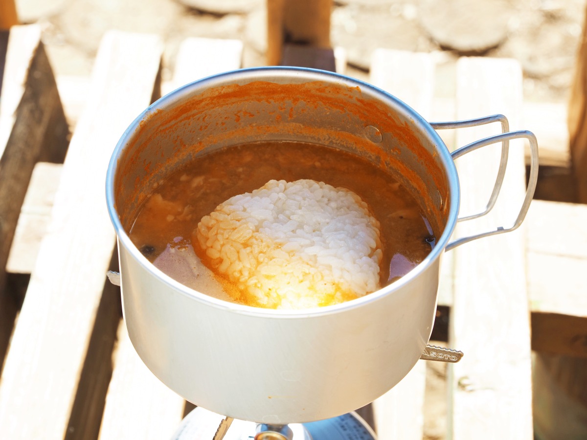 また、山ごはんとして重視したのは、簡単さとおいしさのバランス。おうちで材料を切ったり、調味料を合わせておいたりすることで、山では煮込むだけで完成するレシピに仕上げ、手間を最小限に。残ったスープにご飯を入れて雑炊風にするのもおすすめ。辛さと豆腐のまろやかさが調和し、疲れた体に沁みるひと品です。