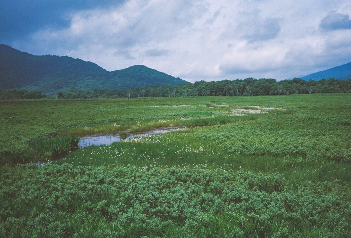 尾瀬ヶ原に点在する数多くの池塘。ミズバショウのシーズンはもちろん、夏にはヒツジクサやオゼコウホネなどの水草、ニッコウキスゲなど、季節ごとに咲く花を楽しめる。風のない日には逆さに映る燧ヶ岳が見られることも。熊鈴なども持参したい。