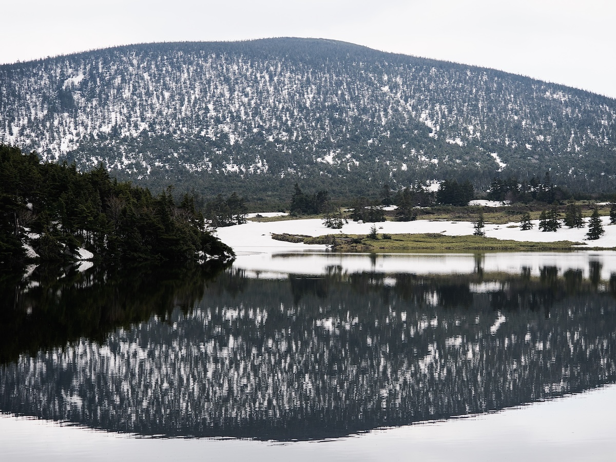 吾妻連峰の鎌沼を散策中、この日は無風でリフレクションが美しく「どら焼きみたい!」と目に留まり撮影。落ち着いた雰囲気にしたくカラープロファイルのCOLOR2で撮りました。