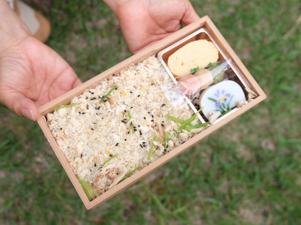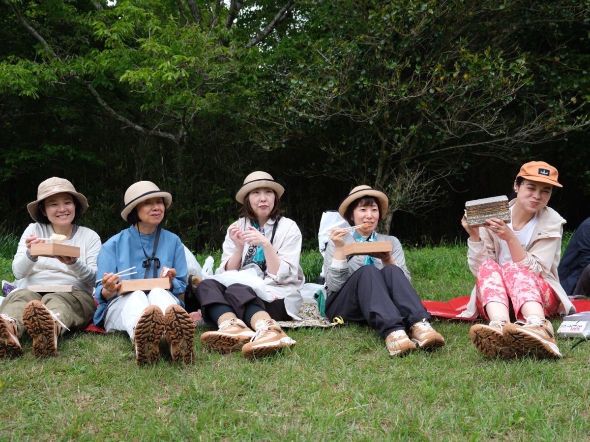 お待ちかねのランチタイムは、それぞれが箱根湯本駅で購入したり、持参したりしたお弁当を広げ、ピクニック気分で楽しみます。開放的な草原のなかで食べるお弁当は格別の味。自然のなかで食事をともにすることで、参加者同士の絆もいっそう深まります。