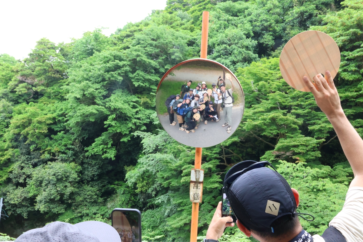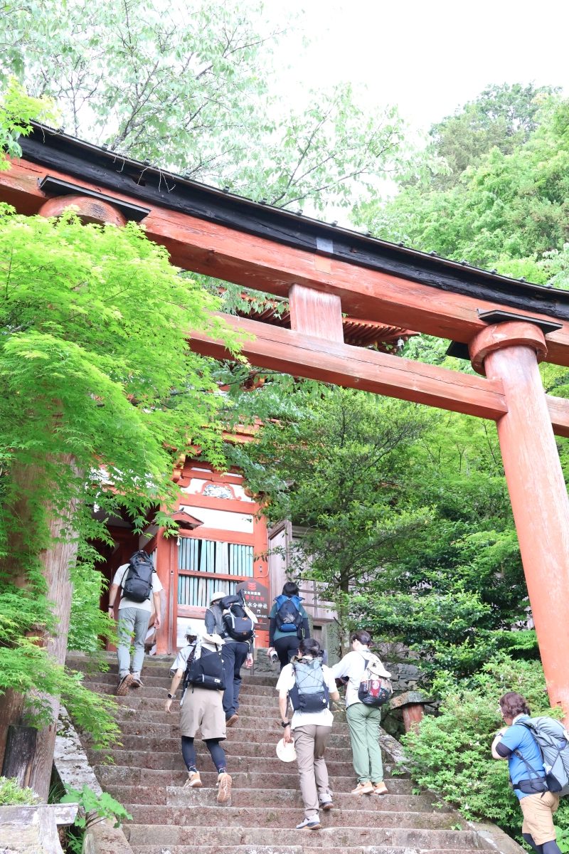 雨予報を吹き飛ばし、ときおり晴れ間ものぞいたイベントの舞台は、山全体が世界遺産に登録される吉野山。地域の歴史や文化に触れて歩く山旅の魅力を発信する、低山トラベラー・大内征さんが案内人となり、KEENのハイキングシューズの履き心地を体感する1日がスタートしました!