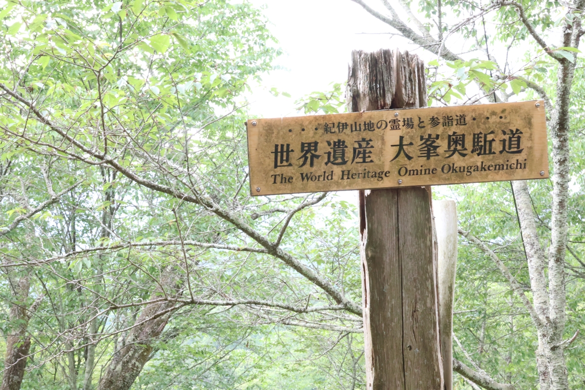 吉野山は、山全体が世界遺産(この吉野山を含む「紀伊山地の霊場と参詣道」)に登録されています。また、奈良県と和歌山県にまたがる約170kmにおよぶ大峯奥駆道は、修験道の修行の道であり、今回歩いている道もその一部。さらにはこの先、五番関から阿弥陀ヶ森までのおよそ8.5kmの区間は、いまでも女人禁制エリアです。