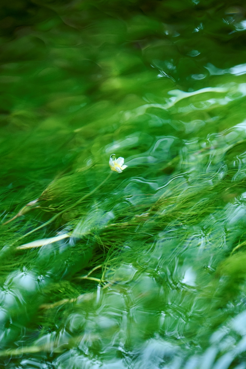 太郎・次郎滝をあとにし、「長慶薬師霊命水源」へ。「バイカモ」と呼ばれる水草が広がり、一面に小さな白い花が咲いていた。