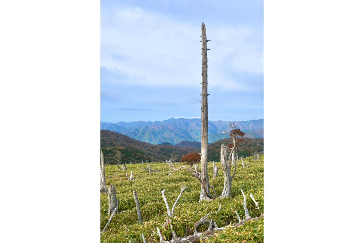 日出ヶ岳から足を伸ばし、正木ヶ原へ。立ち枯れたトウヒの木々たちが私を迎えてくれます。