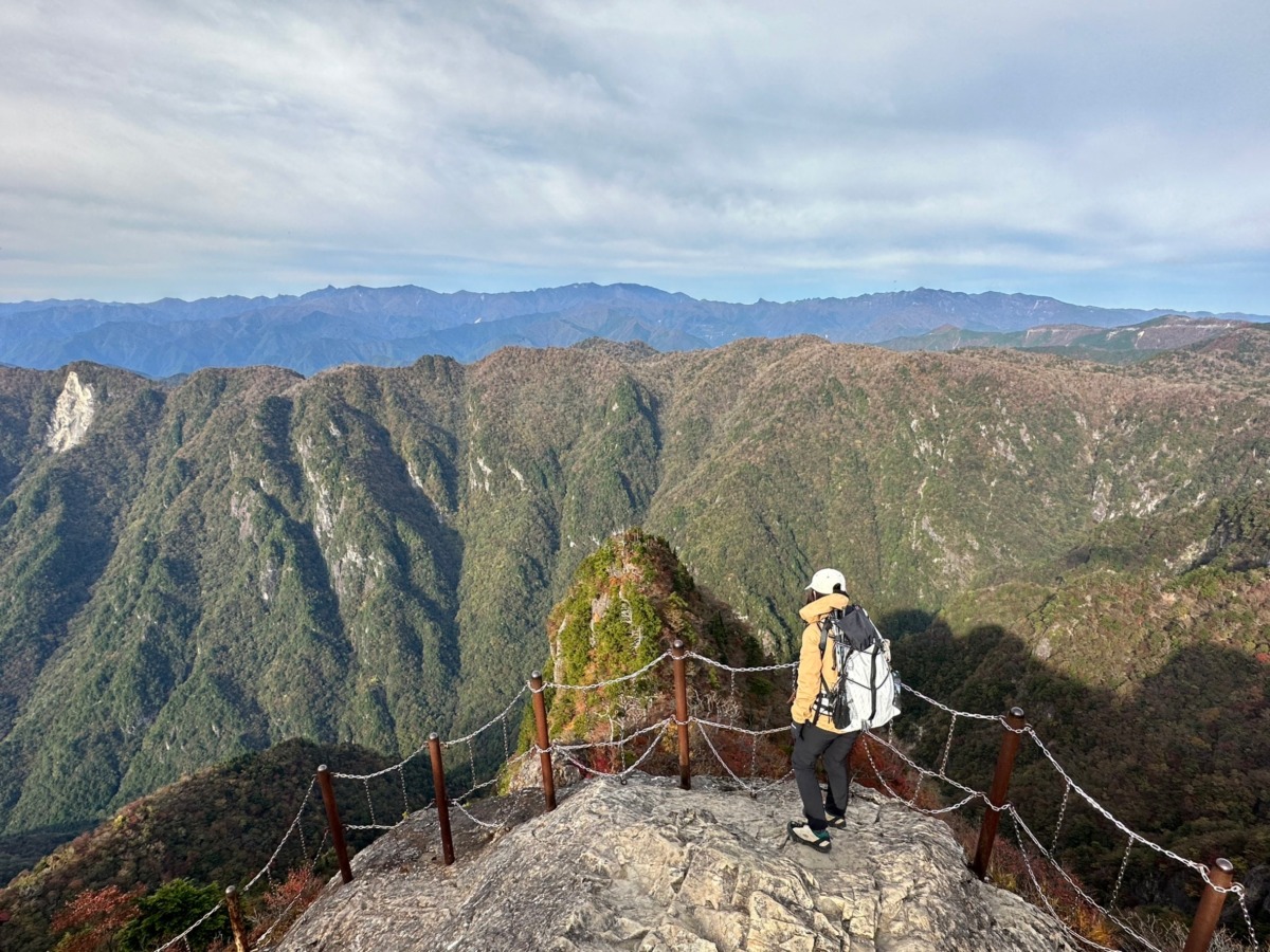 足がすくんでしまうような場所ですが、見たい景色がその先にあり……。勇気を出して足を進めると、そこには圧倒的なパノラマビューが待っていました。また、紅葉した葉木たちがさらに景観を色鮮やかに染めてくれていました。