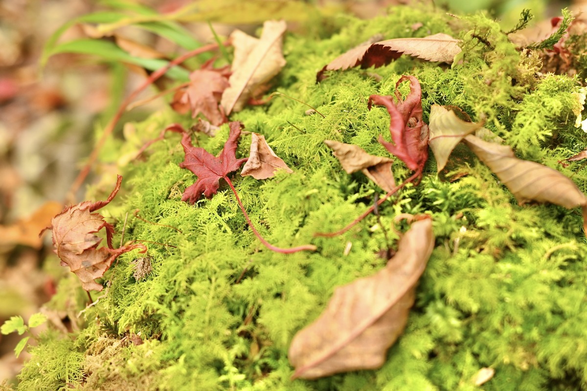 足元には、たくさんの苔たちや、苔の上に寝そべっている鮮やかな葉たちがたくさん!シャッターを切る手がもう止まりません(笑)。下山するギリギリまで魅力たっぷりな、お気に入りでおすすめの山です。