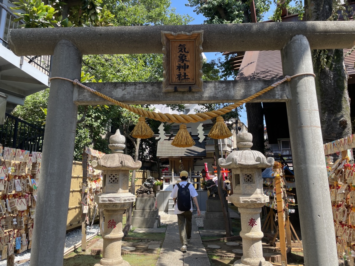 もともとは、大日本帝国陸軍の陸軍気象部の構内に造営された気象神社。戦後、高円寺氷川神社に遷座されました。晴れマークが書かれているお守りや、てるてる坊主のお守り、下駄の絵馬など、めちゃくちゃかわいい。登山や運動会、結婚式に旅行など。たくさんの「晴れてほしい」の想いが溢れる場所です。